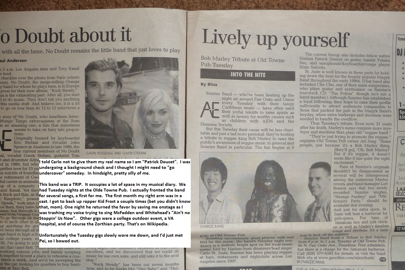 SunRize. My wife's wheelhouse is 80s metal (she knew me better than she thought!) but she came to all the gigs.