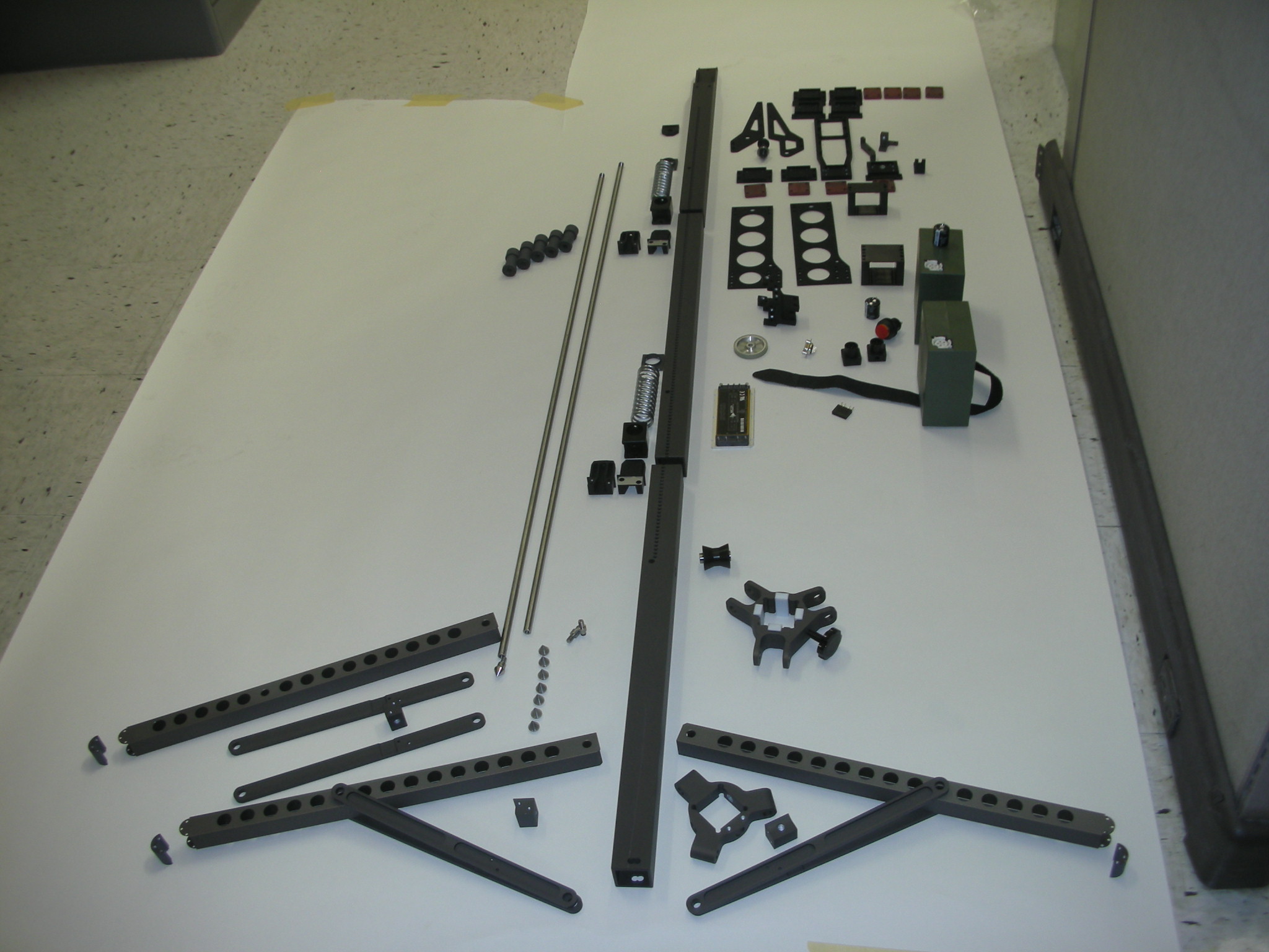 Here are a lot of the 2007 machined parts between anodizing and the start of assembly. Wherever there was an opportunity to make duplicate or similar parts I took it. This reduces time, money and documentation.