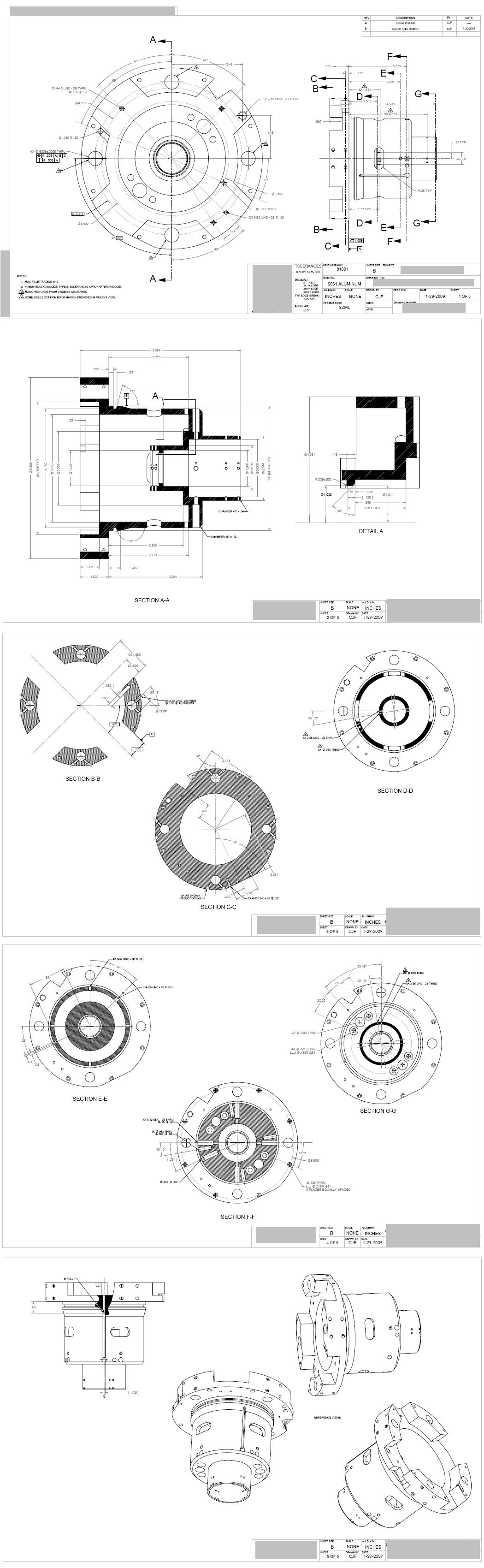 We were given information on the type of projector it would be mounting to and all the mechanical tolerances for the optical elements. I took it from there and produced this design. Here is a 5 page drawing   of the base optical flange. As parts started to show up, the real fun began. I spent some lonely nights in the cleanroom bouncing a laser off spinning lens assemblies and watching it trace ellipses on the microscope monitor. Before I was done, those ellipses were smaller than the allowable decentering tolerances.